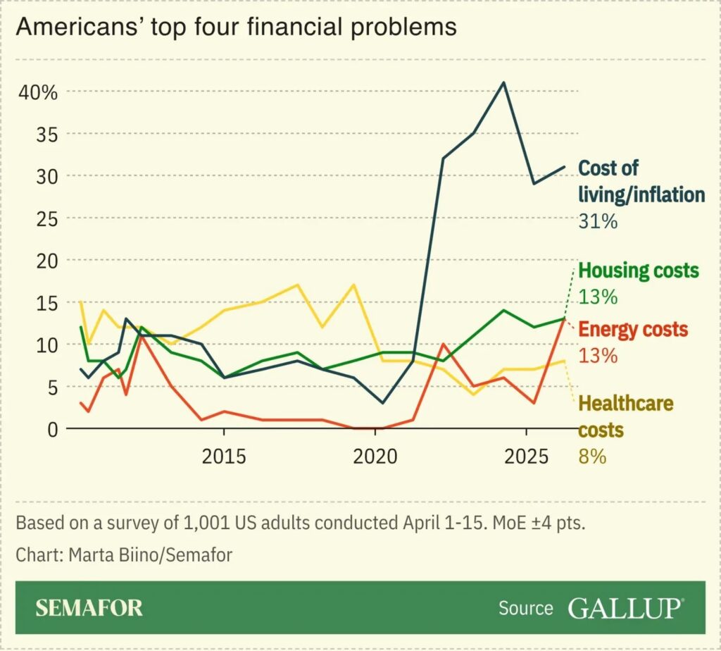 Gallup: Worries about energy costs are up by 10 percentage points since last year, the highest level since 2008, and tie housing as the second biggest affordability concern