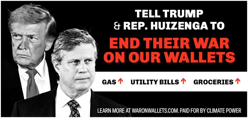 Trump’s war has caused chaos for global commerce, with no end in sight. Michigan Republicans like John James, Tom Barrett, and Bill Huizenga all voted with Trump to support his war and cut domestic energy production. In fact, instead of standing up against Trump or even coming back home to talk directly with their constituents, they appear to want to be anywhere but here. John James was reportedly in the Caribbean while claiming to be at the Detroit Tigers home opener, Bill Huizenga confirmed he ran off to Scotland, and Tom Barrett refuses to stand before his voters in public events.