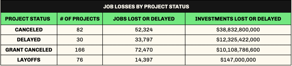 The following graphs provide a localized rundown of the economic and social impact of the administration’s policies over the last year. These figures highlight the specific toll on their constituents, ranging from utility rate hikes to the massive loss of clean energy jobs and investments.
