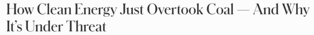 Forbes: How Clean Energy Just Overtook Coal — And Why It’s Under Threat