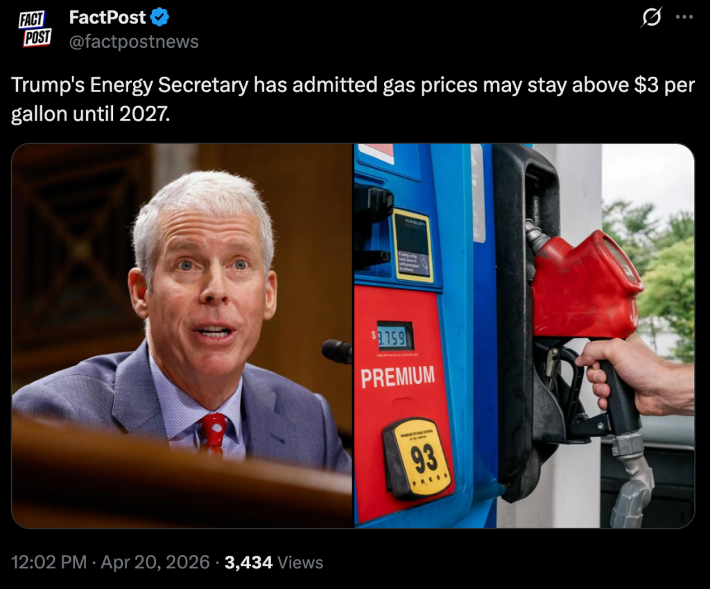 Washington, DC – Trump administration officials are desperately trying to get themselves out of the mess that they created by throwing excuses at the American people, but unfortunately for them, they can’t even seem to get on the same page on what to tell them. After his own Energy Secretary’s admission that gas prices may not fall to pre-war levels until after the midterm elections, Donald Trump insisted that he was wrong. Ironically, though, Wright was only echoing an answer Trump himself gave to Fox Business a week ago.